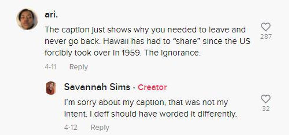 A woman named Savannah Sims was sunbathing on the big island in Hawaii where she was taking a vacation when a mother berated her and told her to leave over what she was wearing.