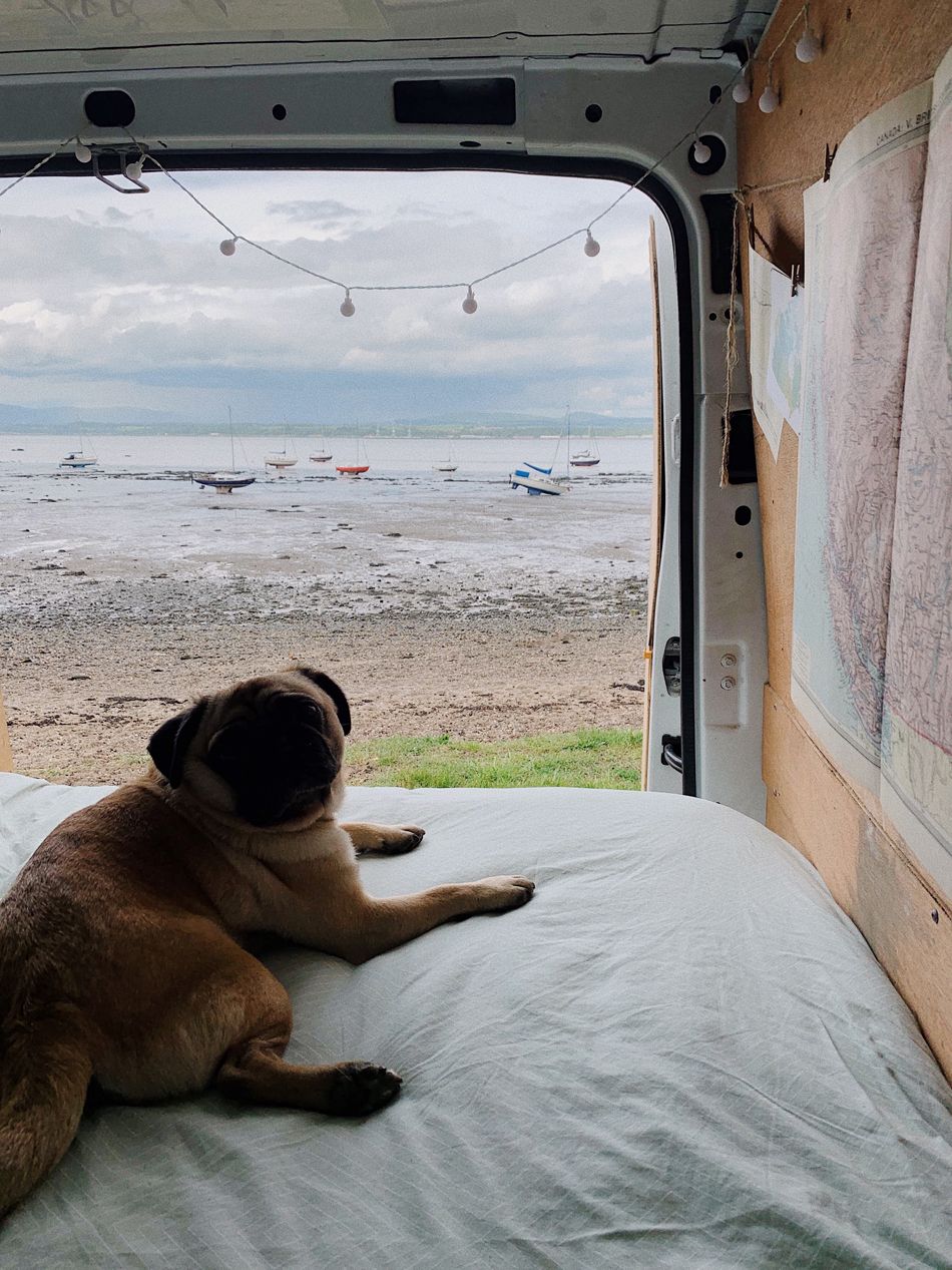 A woman who found not one, but two life-long companions after swiping right on a dating app "on a whim" when a picture of an adorable pug caught her eye has told how the trio now spend their days traveling the UK in an up-cycled campervan.