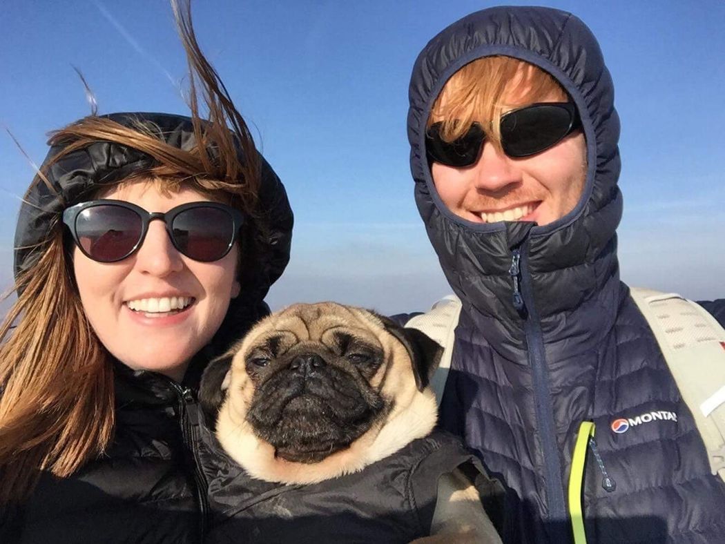 A woman who found not one, but two life-long companions after swiping right on a dating app "on a whim" when a picture of an adorable pug caught her eye has told how the trio now spend their days traveling the UK in an up-cycled campervan.