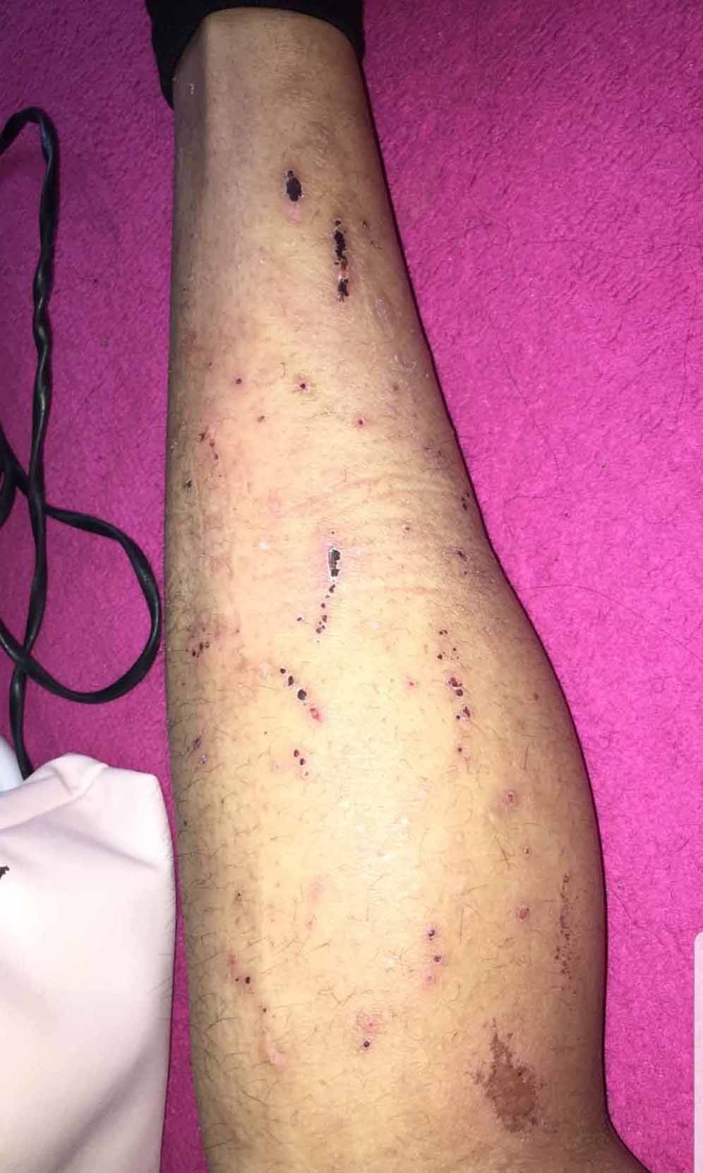 Initially, she thought it had been caused by a simple insect bite, but within a couple of days, it had completely coated both limbs.