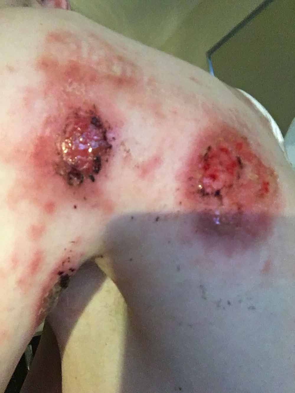 "When a diagnosis was finally given, I had been treated by the outpatient clinic, having the burns dressed."