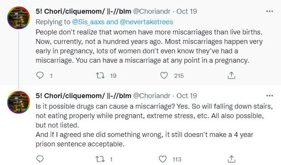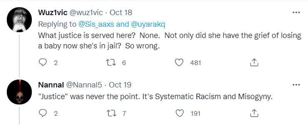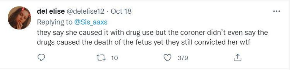 "She has suffered the trauma of pregnancy loss, has been jailed for a year and a half during a pandemic, and was charged and convicted of a crime without basis in law or science."