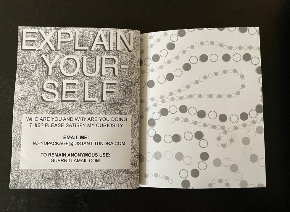Someone keeps stealing my packages so I made them a zine, asking them to stop and explain themselves, and put it in a decoy package. Stay tuned and more pics belowpic.twitter.com/EhRJcgMmZL— Eve Harms (@Eve Harms) 1643738547
