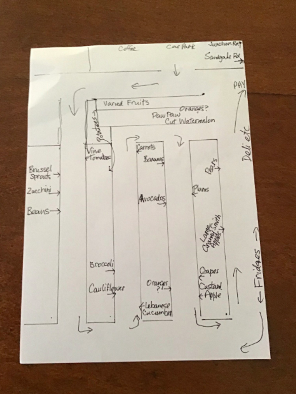 The map has every location that Sarah needed to hit, complete with arrows and labels.
