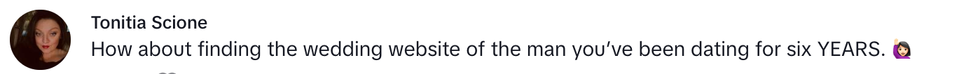 A woman on TikTok has gone viral after revealing she discovered the wedding website of the man she's been dating for six weeks.