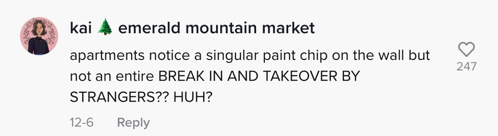 "Someone moved into our apartment while we were gone."