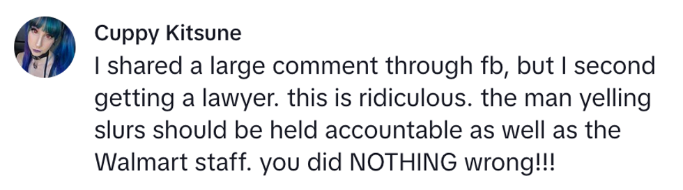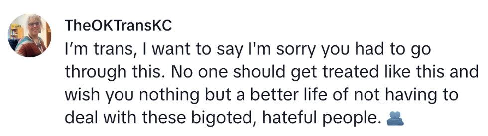 Social media users were outraged to hear how she was mistreated after being threatened and misgendered, and they strongly encouraged her to seek legal action.