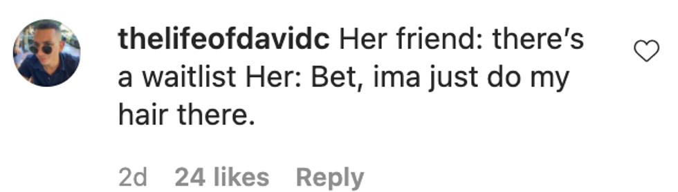 So no matter how bad the humidity gets, remind yourself maybe you don't want to be this girl, straightening her hair around a bunch of people's food.