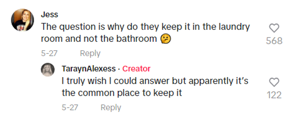 The TikToker's friend said that it was their "poop knife," a knife designated specifically for cutting up poop before flushing the toilet. Though she didn't want to ask any more questions, the TikToker couldn't help but wonder why the family needed a specific knife for this, or why it was kept in the laundry room instead of the bathroom.