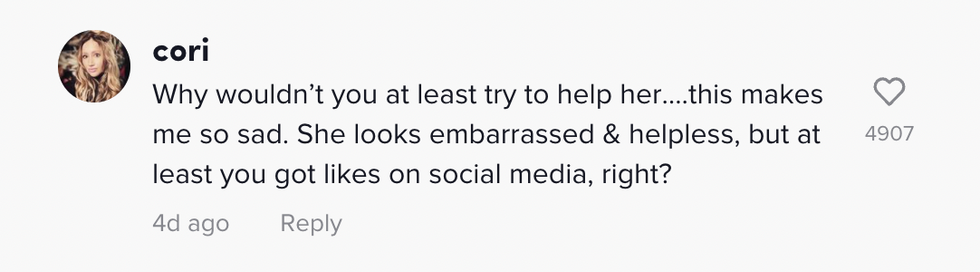 Many of the comments displayed a level of dismay and disappointment for @big_beardd's actions, or lack thereof in this situation and questioned the TikToker about why he would record the young woman's struggle rather than help her.