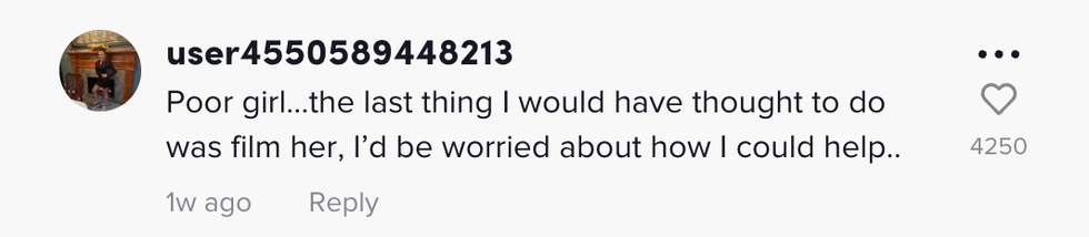 The video has sparked major debate on the social media platform after several viewers criticized the TikToker for recording the incident but doing nothing to help the distressed woman.