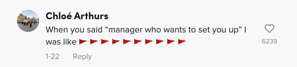 Olivia explained in the TikTok how her manager came into work one day saying she wanted to set Olivia up with one of her friends.