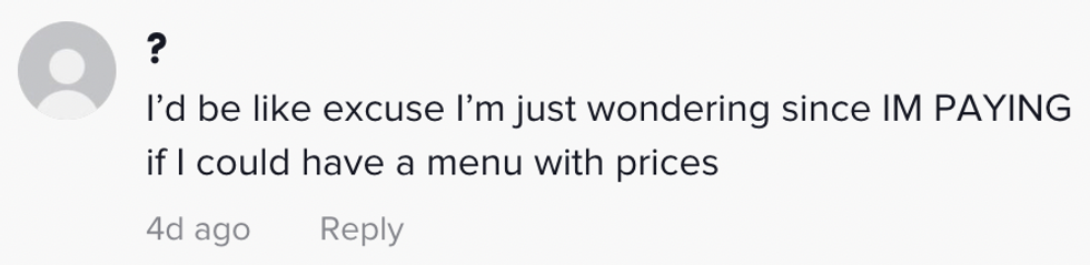 She said her boyfriend called the restaurant "expensive." When she asked him how he knew she saw his menu had prices listed.