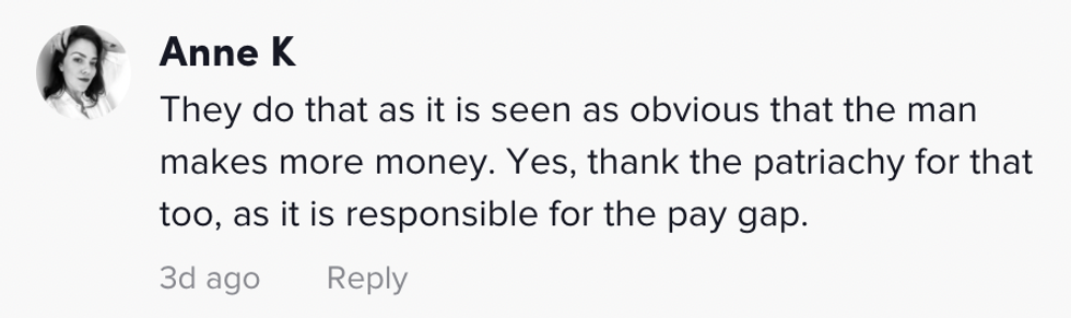 "He got a menu with prices on it, and I didn’t. I’m the breadwinner."