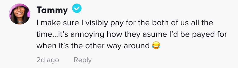 A few had the nerve to tell Chatfield she needed to find a man who could pay for her meal, but most agreed with Chatfield.