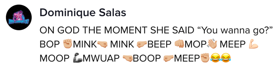 In a series of three video clips that all documented the same incident, TikTok user @musiqcitizen showed the woman's unruly behavior as she approached his and his fellow soldiers' booth in the dining area and got right in their faces.