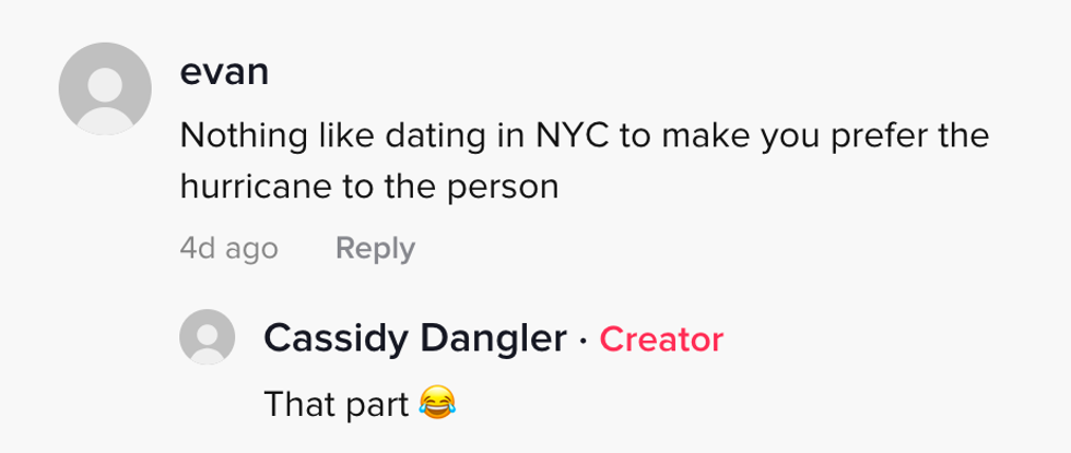 But one TikToker was taken even further aback when her date asked her to make the trek to meet him for their first date during Hurricane Ida which ravaged the New York city area last Wednesday.