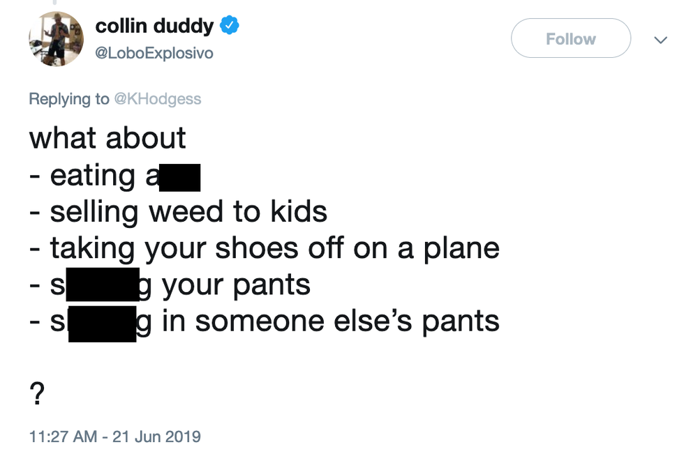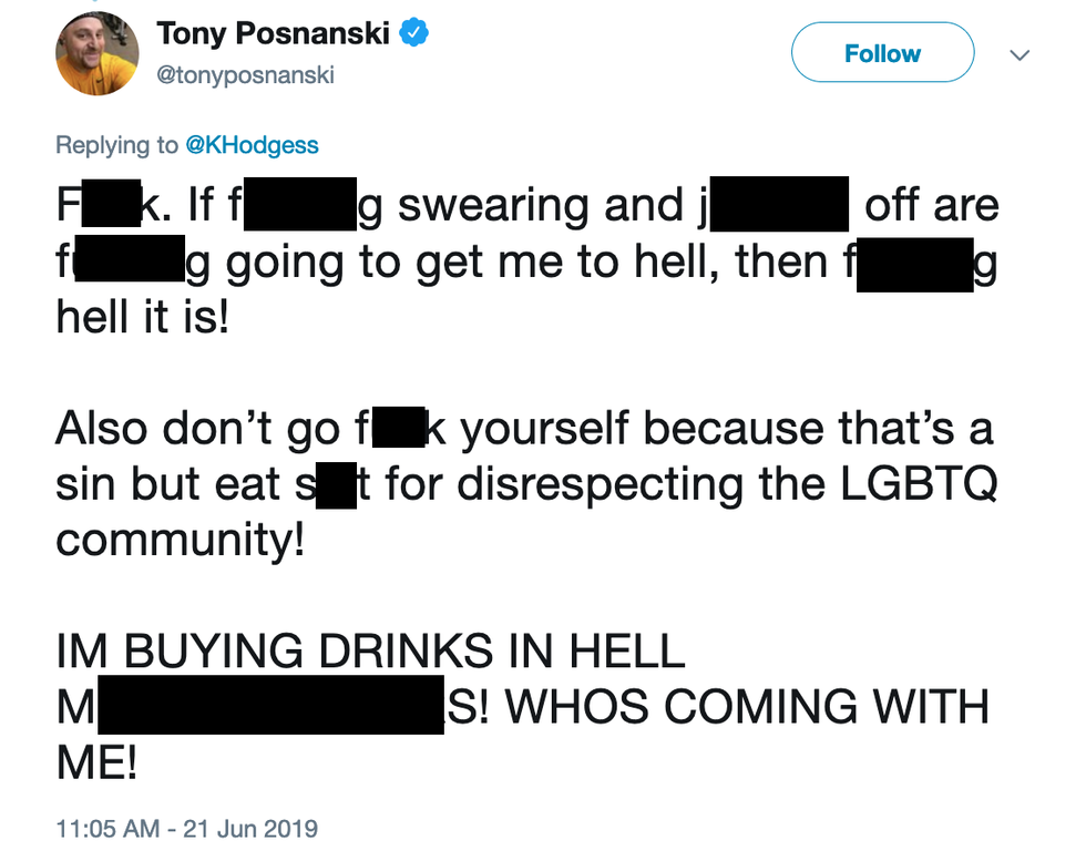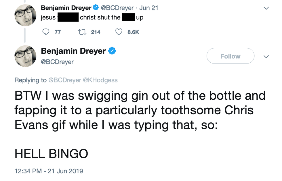 Her tweet got over three thousand responses, with many of them from users who forfeited their ticket to heaven by happily committing one of Hodges's sins: "cursing/quick to anger."