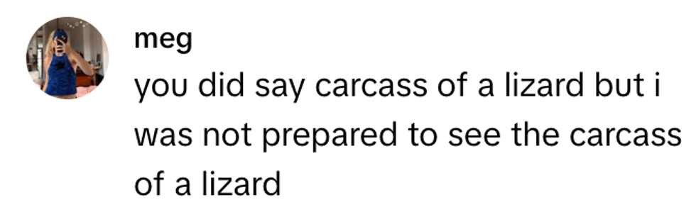 The TikToker had only one explanation for how the lizard carcass could have made its way into her ponytail.