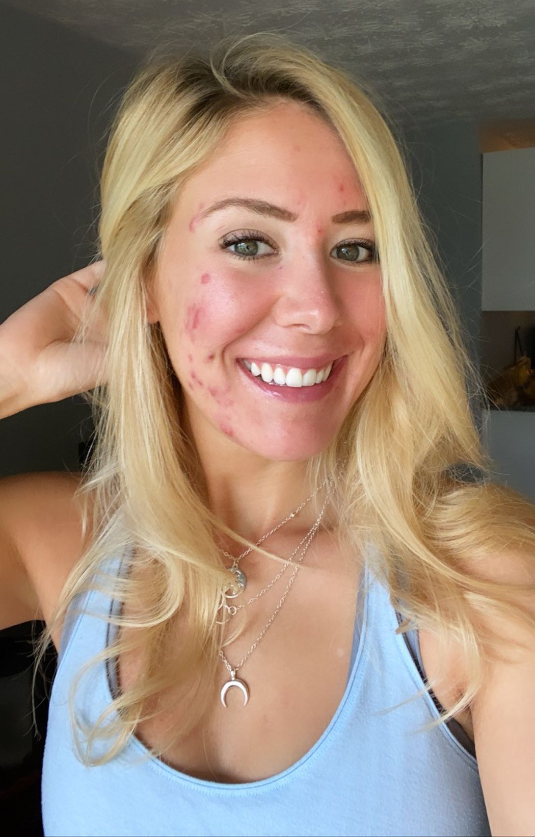 A young woman told how moving 1,500 miles to teach yoga on the idyllic Cayman Islands in the Caribbean gave her the courage to document her bare-faced journey on Instagram, as she tried a radical treatment for severe acne.