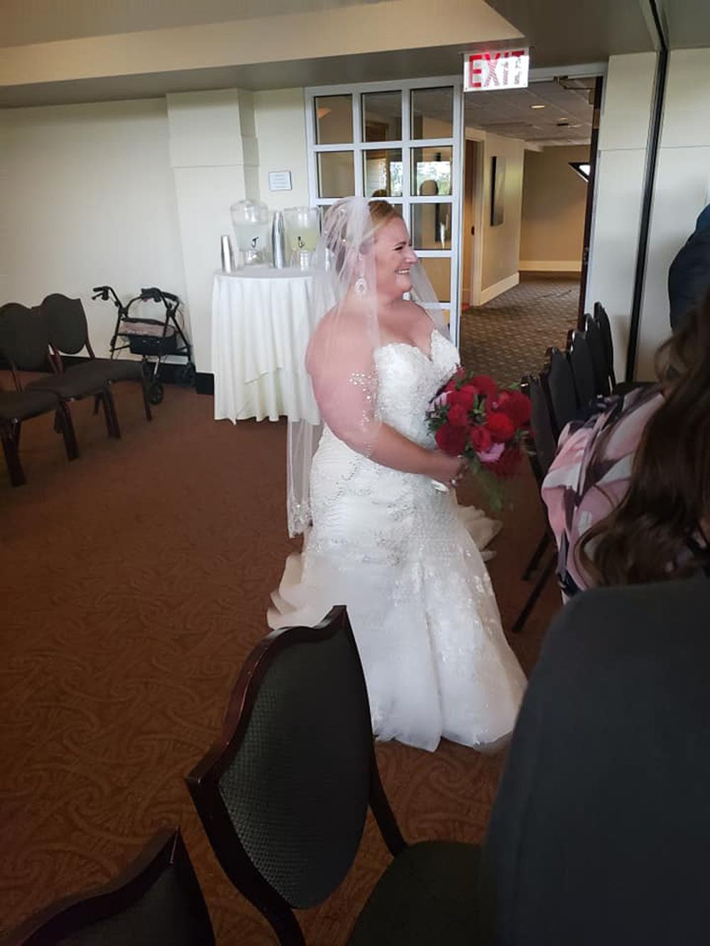 “I wore a traditional bridal gown with lots of beading – not my original one – and he wore a burgundy suit. I walked myself down the aisle. I actually lost my dad, Bob, to cancer in 2015, but even if he had been here, I think I still would've wanted to walk myself."