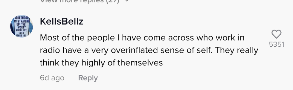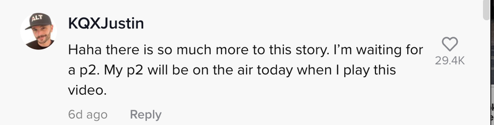 Accompanied with the overlay "Me finding out my neighbor is a radio host" the 30-second video captured Sabina's reactions as she listened to Justin complain about her.