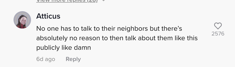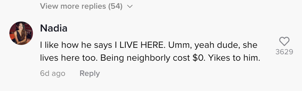 "She goes, 'I was so excited, I just moved here from Philly, I was excited to move in the building, get to know my neighbors, and then I got YOU'."