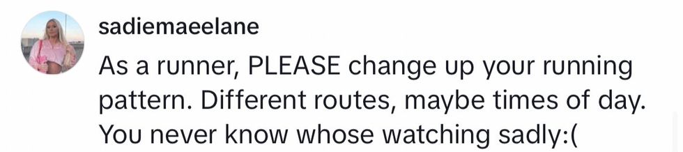 TikToker Lacie—@lacie_kraatz—was running in the park when she noticed a suspicious fellow runner.