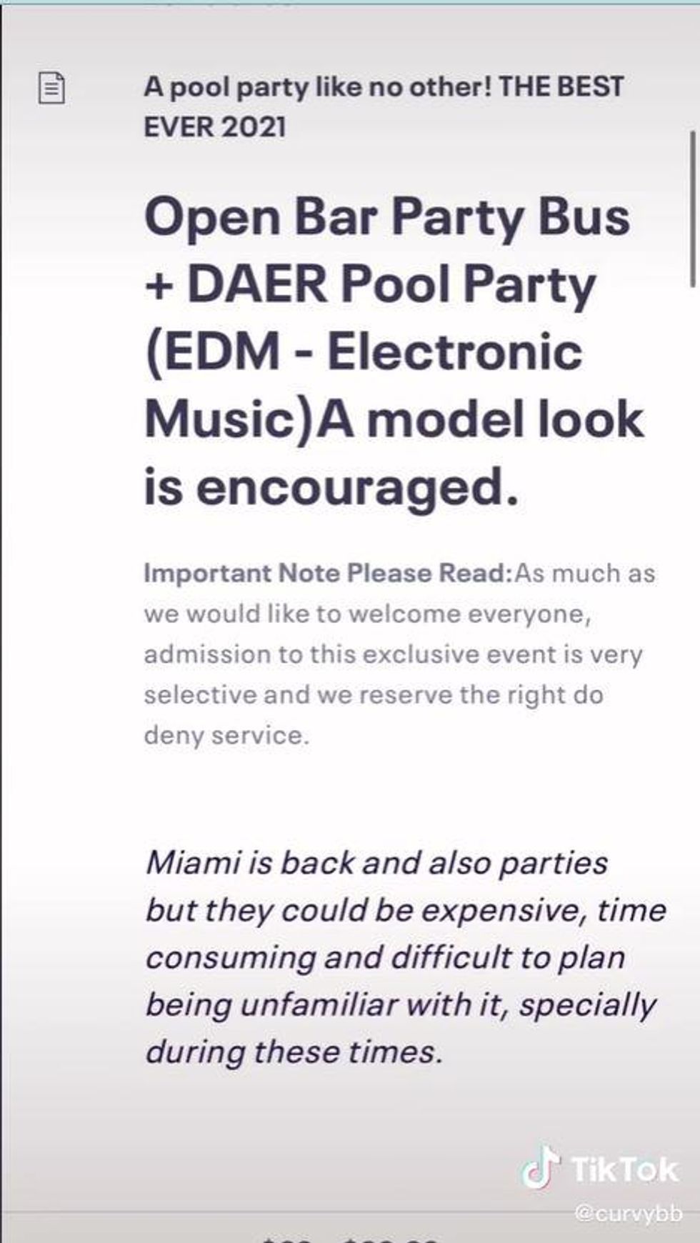 Melillo posted to her TikTok (@curvybb) and Instagram a video explaining what happened when she tried to board a Spring Break Miami Party Service Bus.
