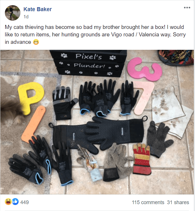 A Hampshire woman has made a plea on Facebook to return items stolen by her “thieving" cat Pixel.
