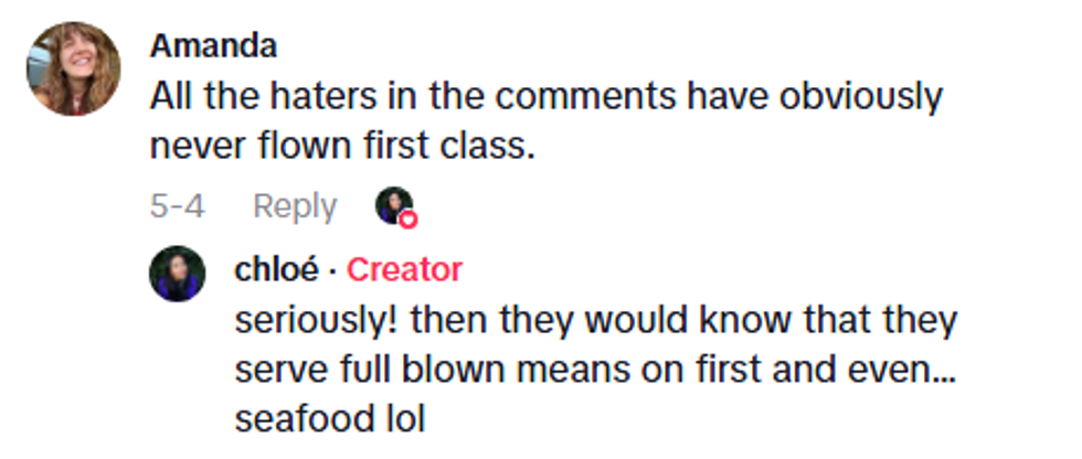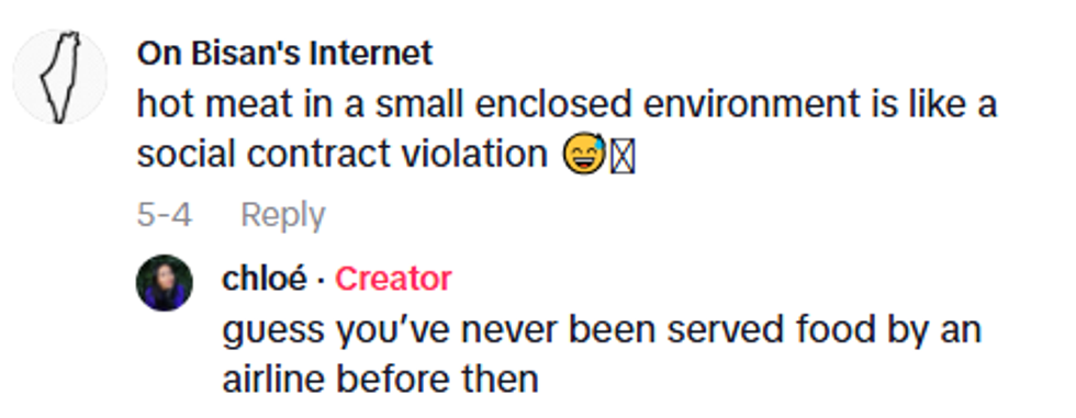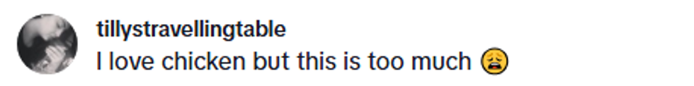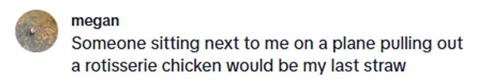 During takeoff, the chicken had to be safely stowed away, but once passengers were allowed to lower their tray tables, the TikToker put the entire rotisserie chicken bag on her tray and proceeded to eat the chicken with her fingers.