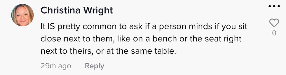 "Next time you sit on a bench, say 'excuse me ma'am, do you mind if I sit here?'."