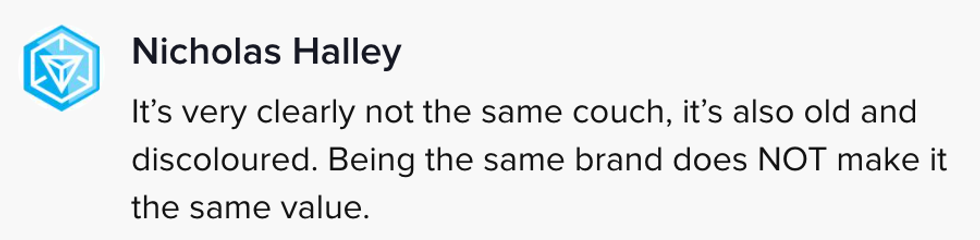 But then, as Schreiner went on to explain in the video, she saw the buyer excitedly post the couch on his Instagram, where he proudly mentioned the brand.
