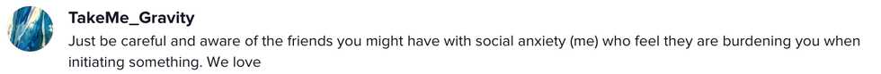A couple viewers of her video noted that it is actually very difficult for some people to initiate conversation and make plans, especially those with social anxiety.