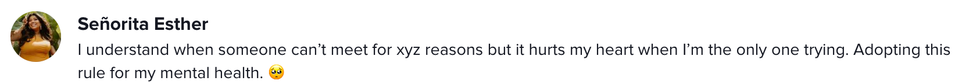 "I have this new rule for friendship and it's that if I'm the one to initiate hanging out 3 times in a row, then I will not be asking them to hang out again until they ask me to do something."