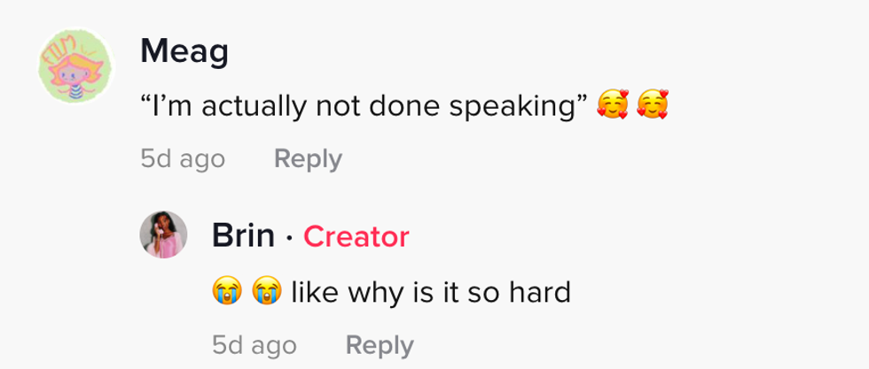 TikToker @directedbybrini had had just about enough when she was interrupted for the final time with a misogynistic statement.