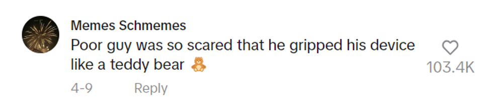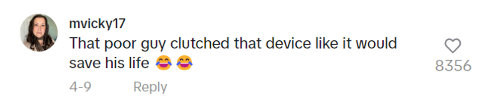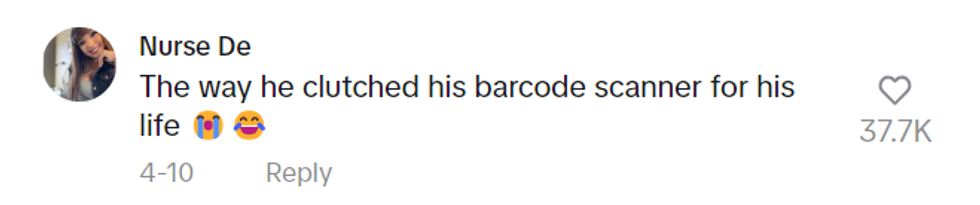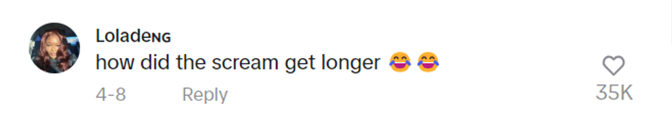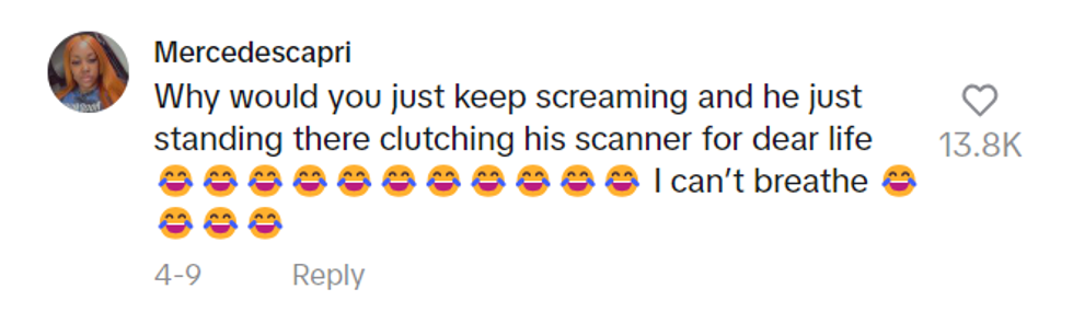 Hilariously, the driver flinched at the first scream, but when the TikToker released a second scream, the driver held his package scanner up to his face like someone holding a teddy bear close for protection. When the screaming stopped, the driver clumsily stepped down from the porch and hurried out of the view of the security camera.