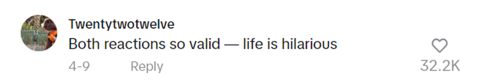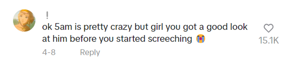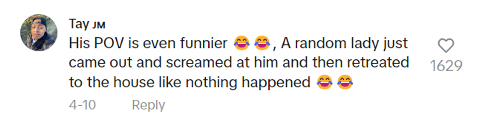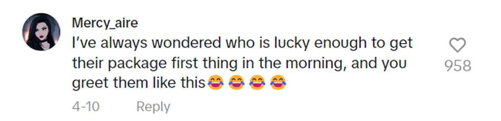 This was clearly all a hilarious misunderstanding in the early hours of the morning when most of us are not the most awake or functional. When the TikToker wasn't expecting to see anyone except her dog and her own reflection, and the driver was just going about his business, scanning and dropping off packages, suddenly bringing the two face-to-face was a recipe for disaster.