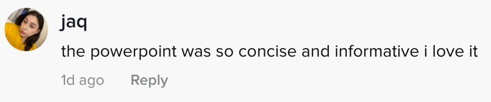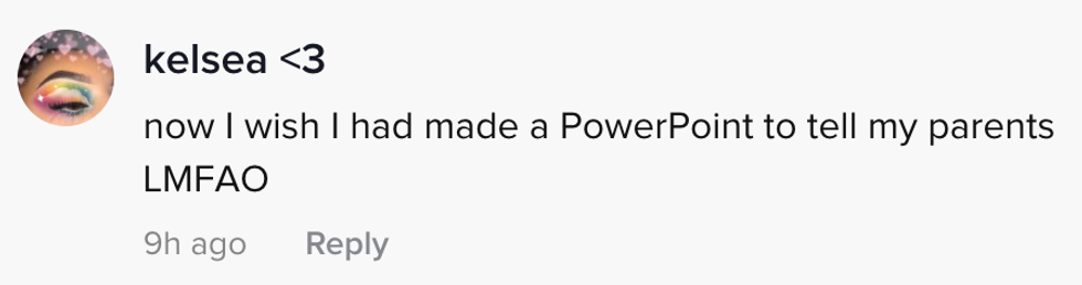 TikTok user @lex1898 was captured by her sibling, user @mildwestsami, giving her parents a powerpoint presentation on her career.