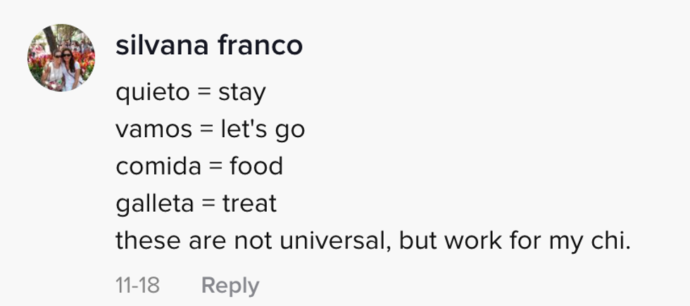 She then showed Max the chihuahua following commands perfectly in Spanish, including "vamos" for "come here," "sientete" for "sit down" and "buen chico" for "good boy" to which the pup's tail wags uncontrollably.