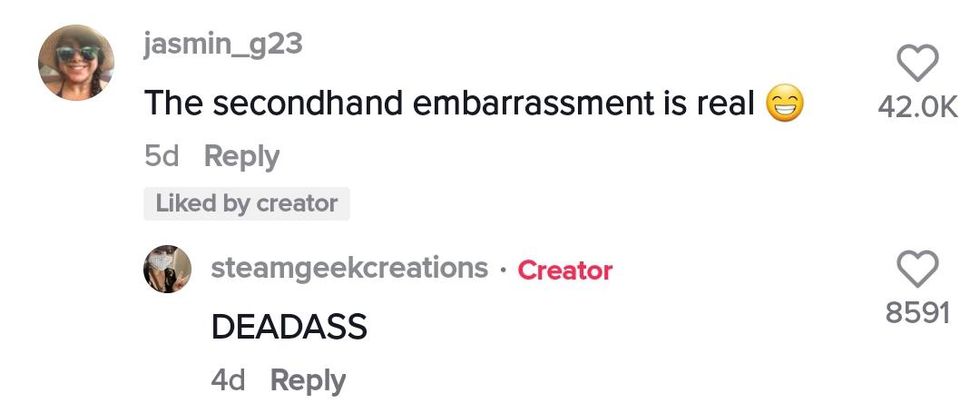 But this is one of those harmless and hilarious kinds of cringe, so it's providing a little palette cleanser for TikTok.