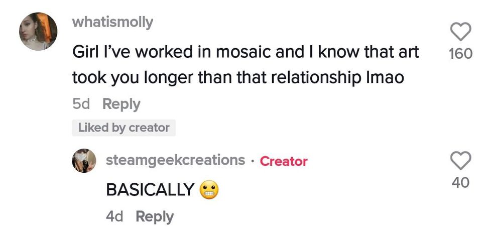 After the initial shock wore off, she flipped the piece over to see that it had been changed slightly since she made it.