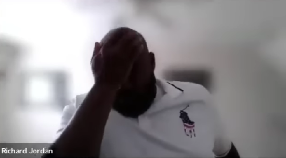 For pretty much the rest of the video, Jordan sits in silence with his face in his hands. It's not that there isn't much for him to say or that he's feeling some deep shame or anything.