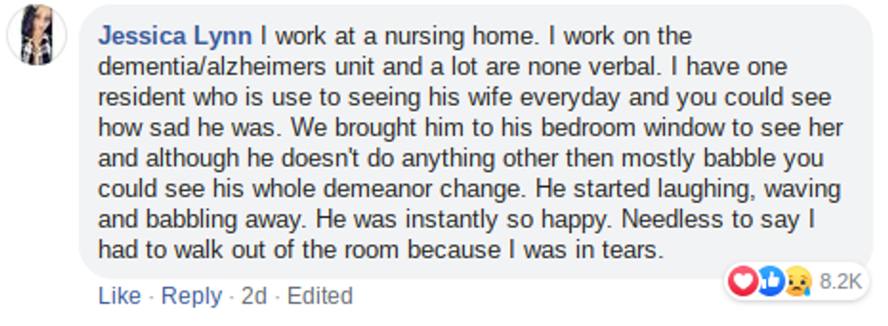 The Premier Living & Rehab Center also took a few pictures, capturing the moment for Boyd and her grandfather, and shared the special moment on Facebook.