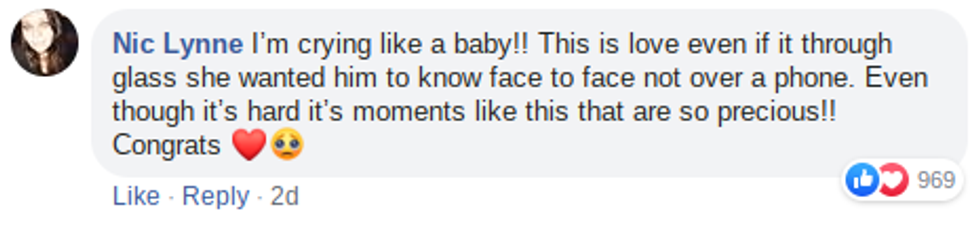 The moment was incredibly sweet as Boyd shared the news through the window, and as they "touched" hands, missing one another and celebrating the moment together.