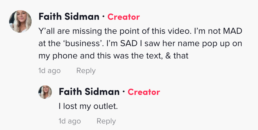 The people of TikTok—despite Sidman's lack of anger at the person who responded—did not share that sentiment.
