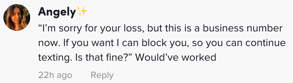 "I do appreciate everyone, I know it's pure intentions, and I really appreciate the sweet words, but that's that. I don't feel comfortable sharing the number or finding the business."