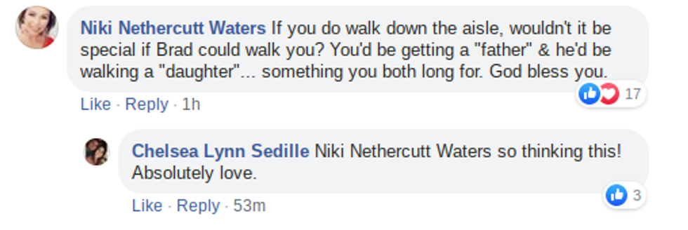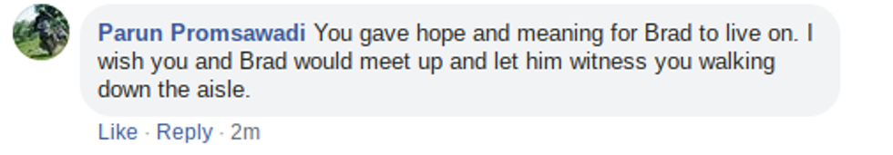 Many have shared their heartfelt replies on Facebook and Twitter, and others have even stated how amazing they think it would be for the two to meet---and even for Brad to walk Patterson down the aisle when the day comes.