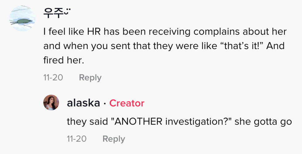 The next update simply revealed the coworker was getting fired.