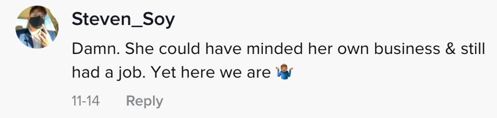 This is a great time to remember it costs $0 to mind one's own business and it will help you avoid becoming unemployed like OP's mom's former coworker.